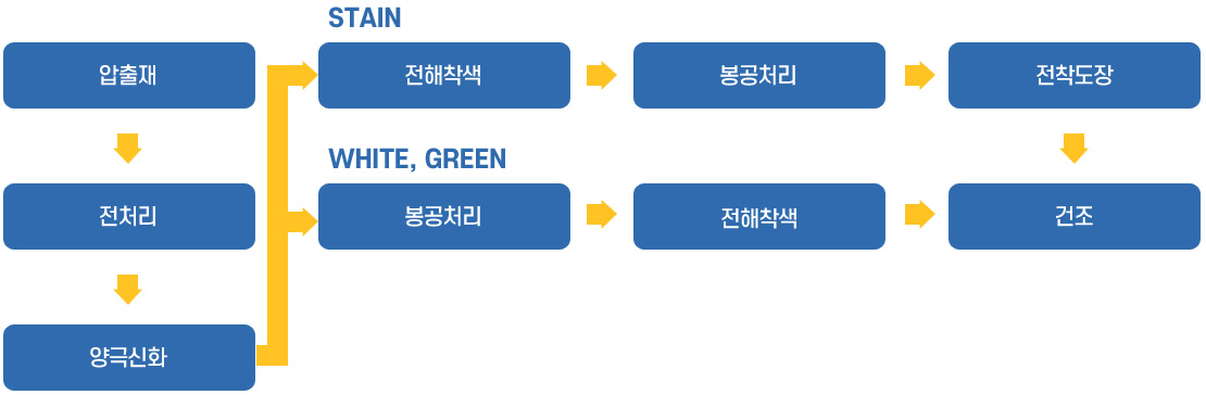 - 전해착색다공질 양극산화 피막공에 전기 화학적으로 착색되는 공정