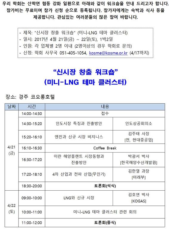 신시장 창출 워크숍 참가 안내 페이지 정보 작성자 관리자 작성일17-04-05 11:30 조회11,455회 관련링크 이전글 다음글 목록 본문 “신시장 창출 워크숍” 안내 이전글 다음글 목록