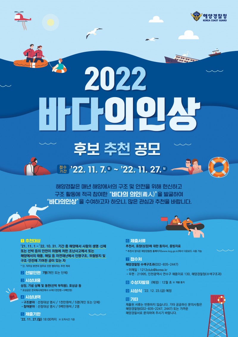 [해양경찰청] 2022 바다의인상 후보 추천 협조 안내