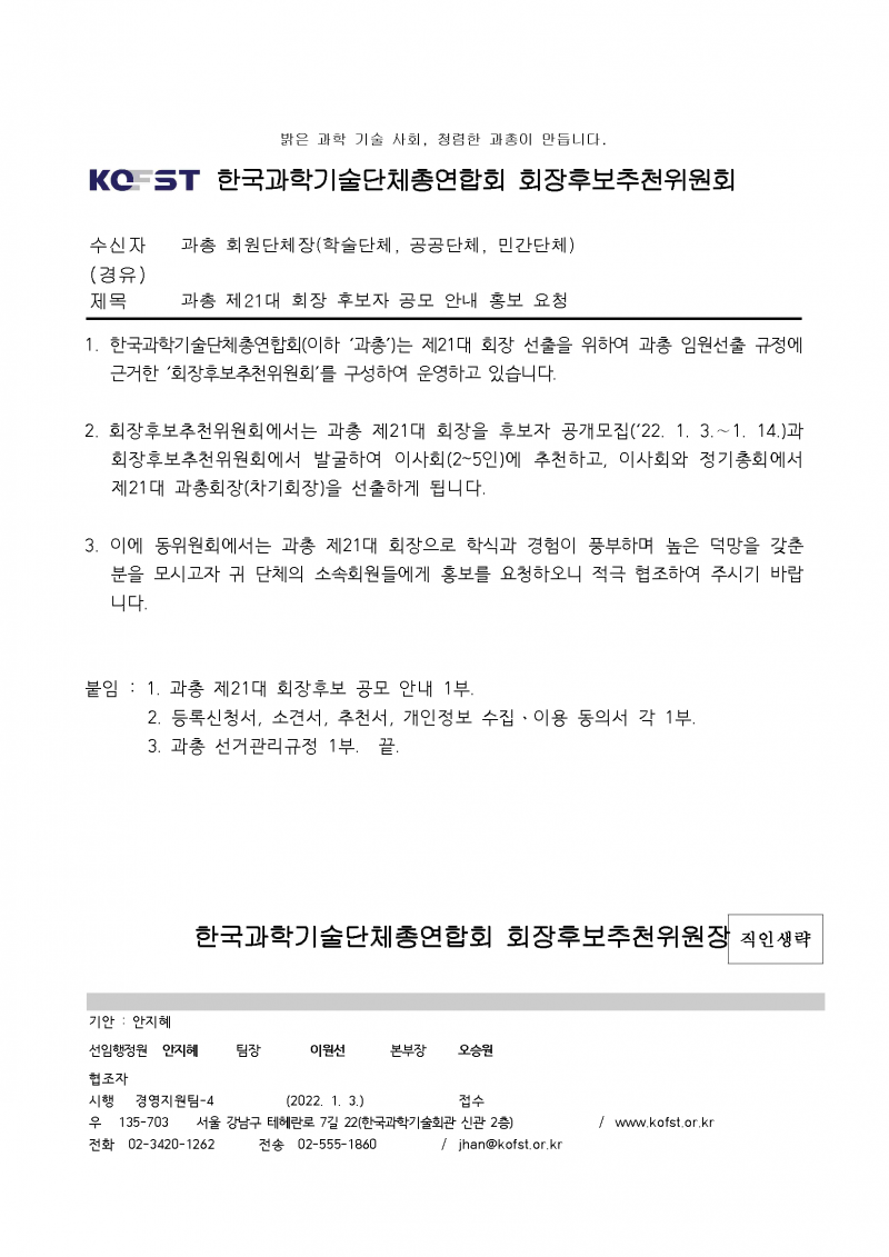 [과총] 제21대 회장 후보자 공모 홍보 협조 안내