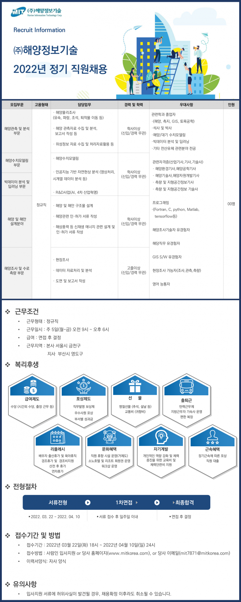 [해양정보기술] 2022년 정기 직원채용 공고 협조 안내 페이지 정보 작성자 최고관리자 작성일22-03-29 12:15 조회7,422회 관련링크 이전글 다음글 목록 본문 . 이전글 다음글 목록