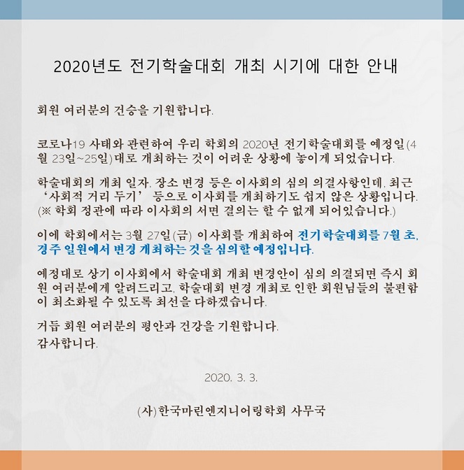 2020년 전기학술대회 개최 시기에 대한 안내