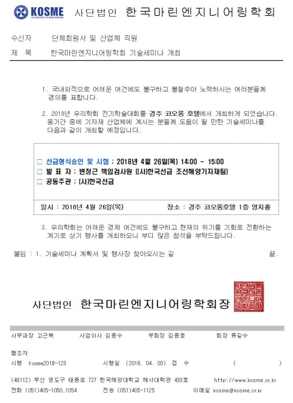 2018년도 전기학술대회 기술세미나 참석 안내