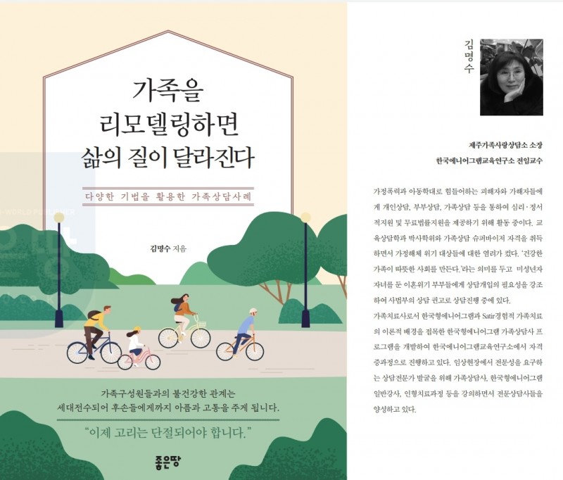 [도서출판 관련] 가족을 리모델링하면 삶의 질이 달라진다-김명수 페이지 정보 작성자 최고관리자 작성일21-07-12 15:58 조회7,034회 관련링크 이전글 다음글 목록 본문 안녕하세요 한국인형치료학회입니다.학회 이사이자 슈퍼바이저이신 제주가족사랑상담소 김명수 소장님의 경험을 사례로 정리한 도서가7월 22일 출간됨을 안내 드립니다. 이전글 다음글 목록